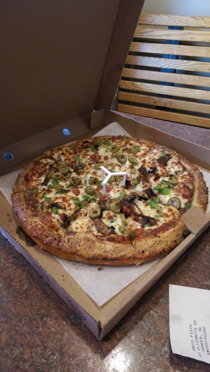 We are new to the province. My manager suggested I try Greco. Well my wife and I tried it. We are originally from Nova Scotia and have had a lot of pizza and donairs and this has got to be in my top 2. The pizza was awesome the garlic bread was great but the donair. Oh my god. This has to be the best I had in years. Thanks guys and girls. If anyone asks from next w on I will recommend you. Thank you